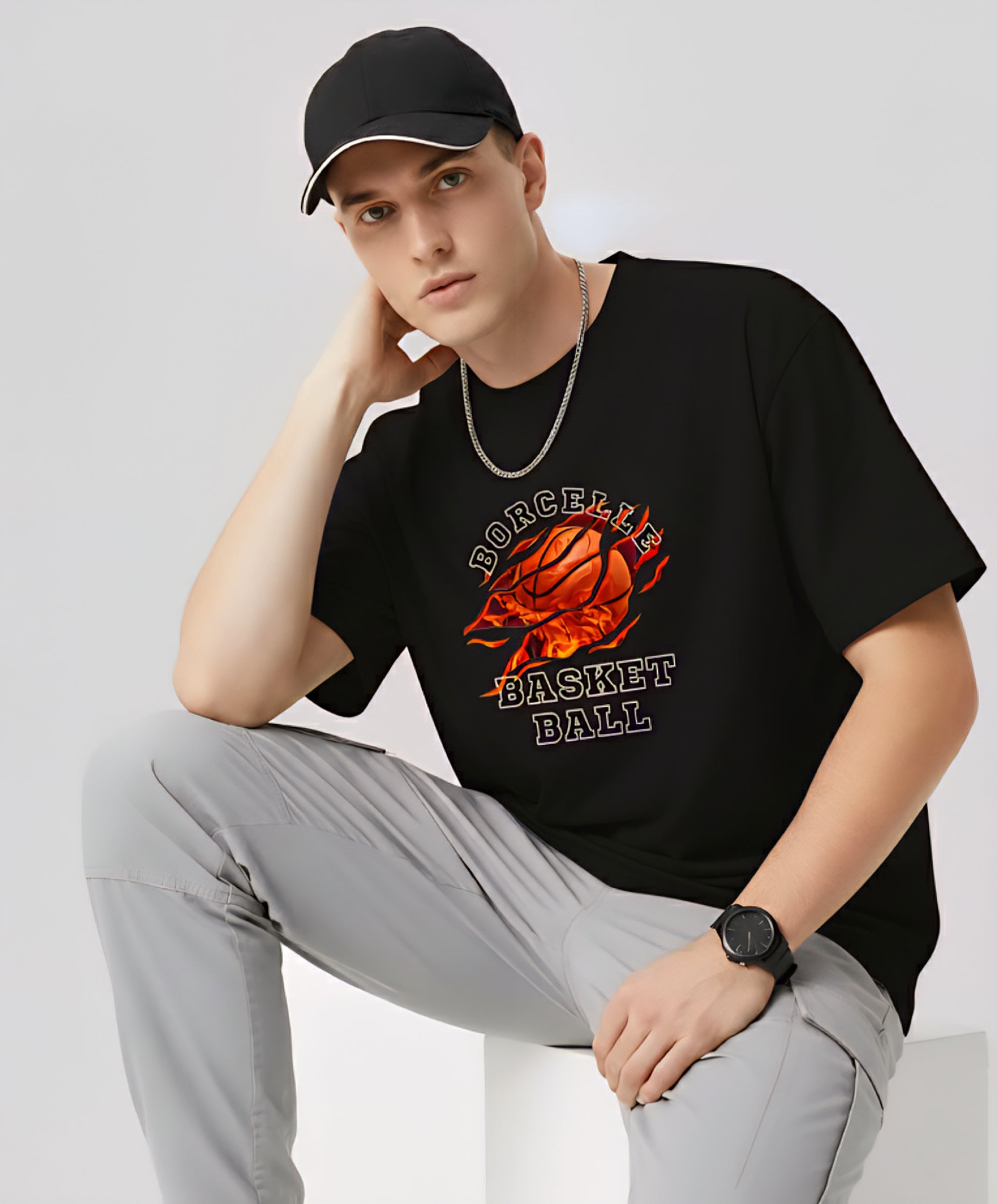 Flaming Basketball T-Shirt: Streetwear Crewneck for Sports Lovers