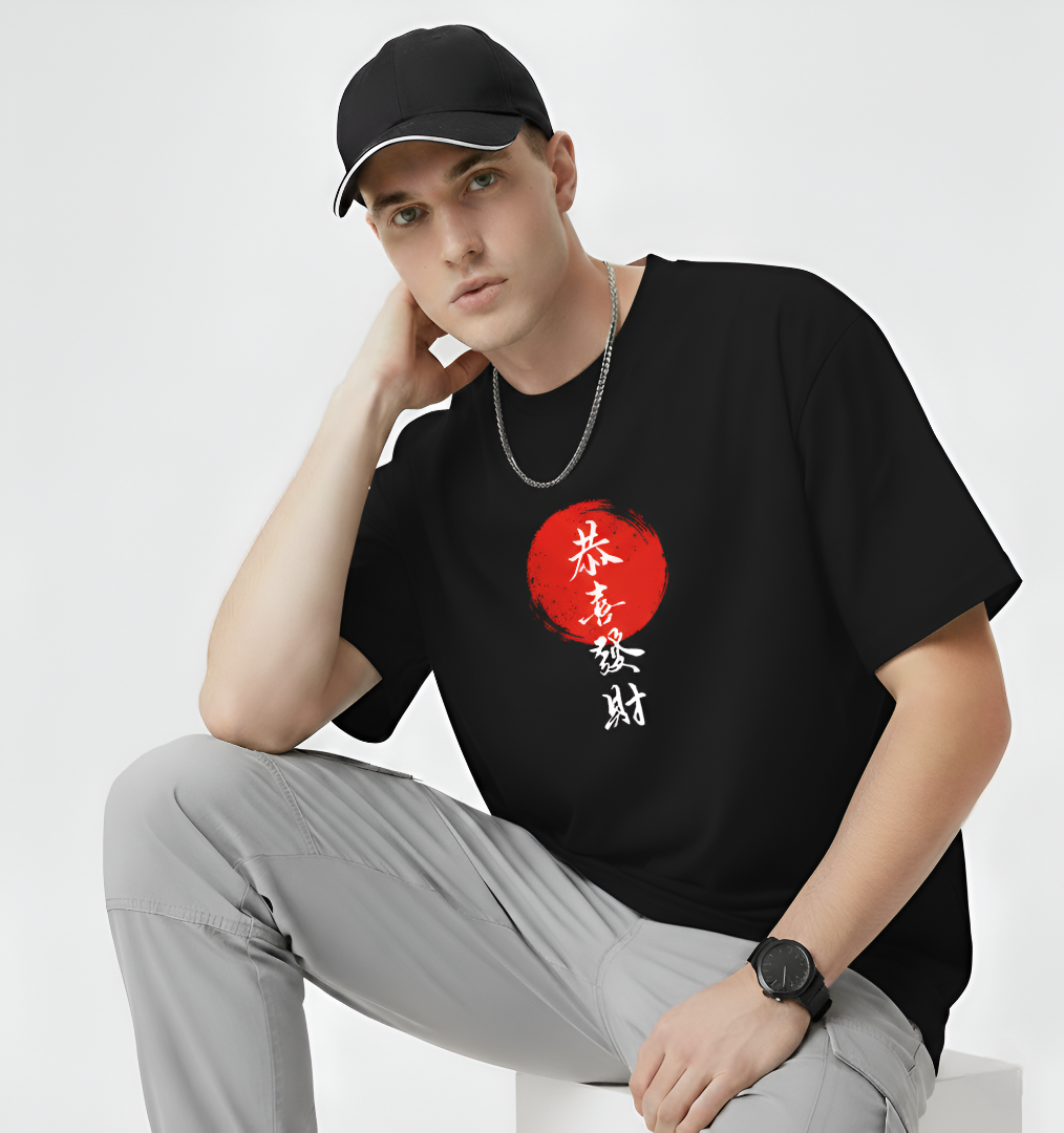 Red Sun Japanese Calligraphy Unisex T-Shirt – Classic Crew Graphic Tee Streetwear