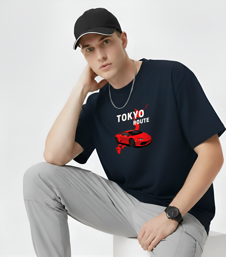 Tokyo Route Car Graphic Oversized Streetwear T-Shirt